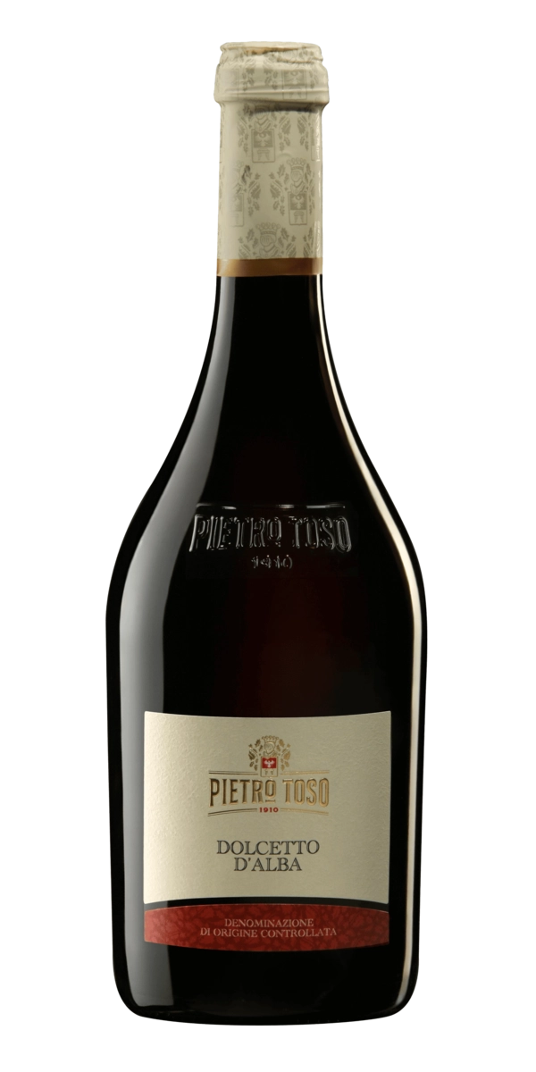 Pietro Toso Dolcetto d'Alba DOC — це червоне сухе вино з італійського П’ємонту, створене з сорту Dolcetto, який традиційно вирощується на пагорбах Альби. Саме ці м’які, сонячні схили формують його яскравий фруктовий характер і виразний, сухий стиль із легкою гірчинкою в післясмаку.