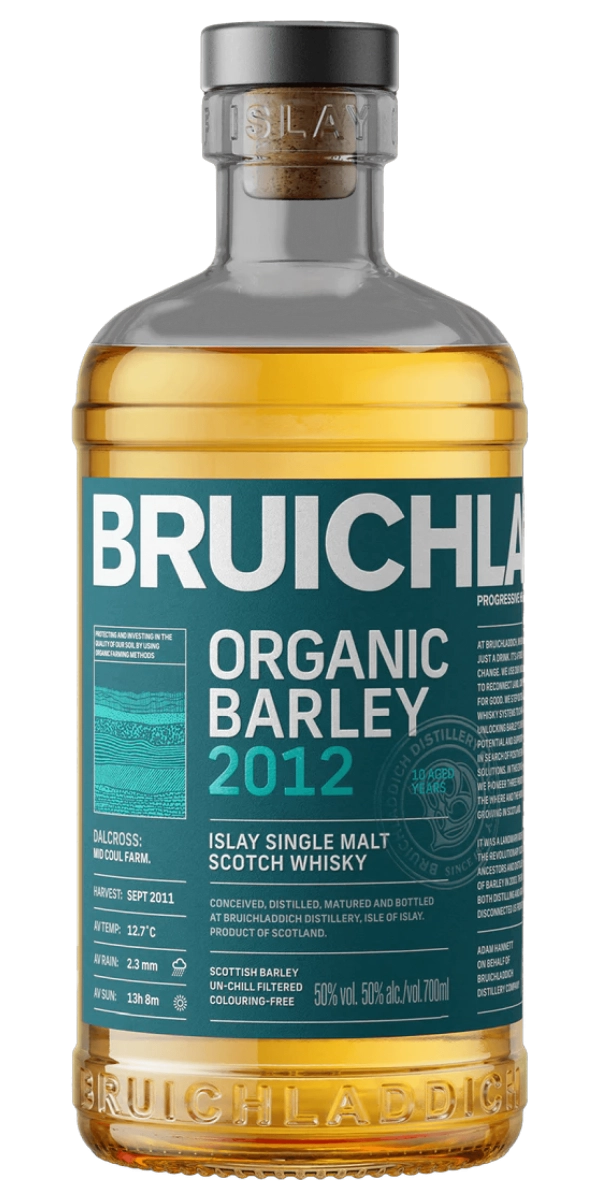 Віскі односолодовий Bruichladdich Organic Barley 2012 – чудовий вибір для тих, хто прагне поєднати натуральність із преміальною якістю. Створений із органічного ячменю сорту Publican, вирощеного на фермі Mid Coul в Інвернессі без використання хімічних добрив і пестицидів, цей віскі є втіленням ідеї чистоти та прозорого походження.