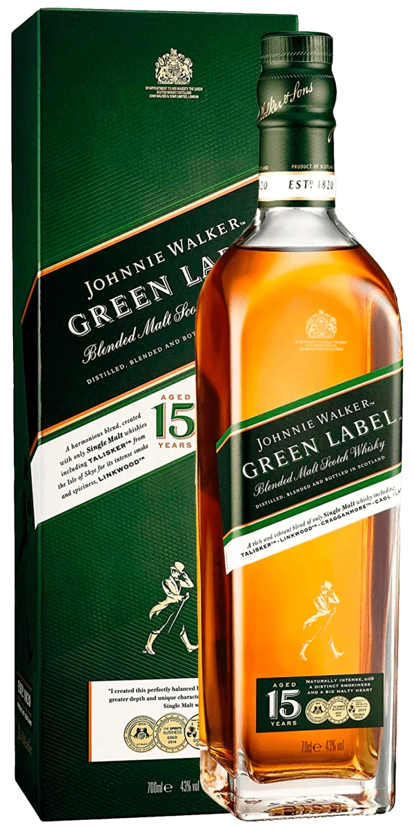 Про цей знаменитий бренд чули, напевно, навіть ті, хто зовсім не цікавиться віскі. А якщо ви відносите себе до знавців цього міцного алкоголю, то знаєте, що Джонні Уолкер Грін Лейбл – це справжня перлина в колекції Johnnie Walker. Купаж з 4 солодових сортів віскі, кожен з яких провів у діжці 15 років, максимально гармонійно поєднується та дарує незабутній смак, в якому можна знаходити все нові й нові відтінки. Такий напій можна випити самому, а можна зробити з нього оригінальний подарунок.
