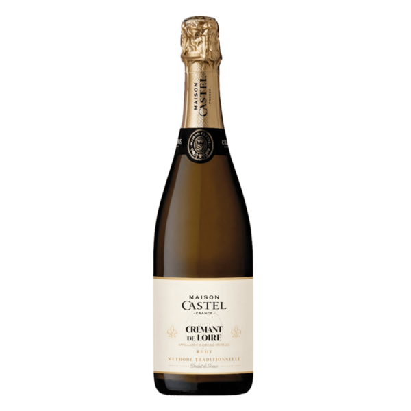 Maison Castel Crémant de Loire Brut — французское игристое вино апелласьона Crémant de Loire, созданное по традиционному методу производства игристых вин. Для его изготовления используется виноград Chardonnay, который формирует изящный аромат и свежий, сбалансированный вкус. После вторичной ферментации вино выдерживается на дрожжевом осадке около 12 месяцев, что придаёт букету глубину и деликатные ноты бриоши. В результате получается элегантное французское игристое вино с тонкими пузырьками, свежим фруктовым характером и гармоничной структурой.